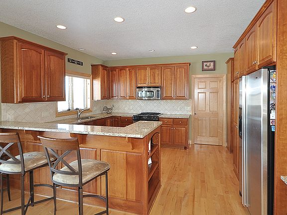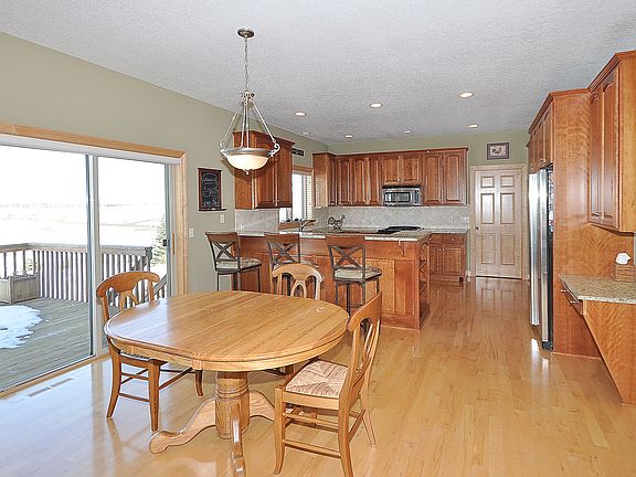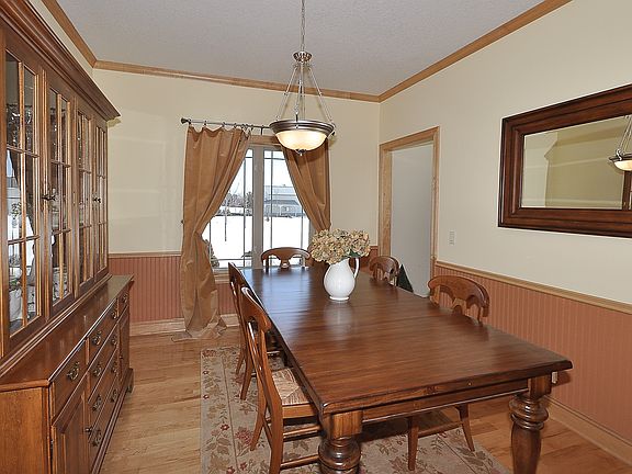 Spectacular living on 5 acres w/ enormous master suite, grmt kitchen, exquisite craftsmanship. This home is a beautiful mixture of dark and light hardwoods including Maple and Cherry wood finishes. Walk-out basement, deck, porch.MAIN LEVEL FOYER Spacious foyer with tiled floors, two story ceilings, leaded glass doors and a huge walk-in coat closet. Plus, a nice powder room is located adjacent to the entrance for added convenience. KITCHEN Beautiful gourmet kitchen with cherry cabinetry, tile backsplash, breakfast island and stainless steel appliances. This kitchen also has built-in bookcase and desk.FORMAL DINING ROOM Elegant formal dining space with hardwood floors, wood trim, and wainscoting.INFORMAL DINING ROOM Casual dining can still feel elegant, located next to the kitchen with hardwood floors and direct access to the deck.LAUNDRY A wood pocket door leads to the spacious laundry area. The laundry features wood trim and tiled floors, plus lower and upper wood cabinetry with plenty of countertop space. Plus, open the french doors to find a huge linen closet.LIVING ROOM The living room is a light and relaxing space next to the foyer. Large windows give sweeping views of the outdoors.FAMILY ROOM Unwind in the family room surrounded by natural light from the numerous wood-trimmed windows. A gas fireplace with tile surround and wood mantel provide additional warmth to the space, and a ceiling fan cools the space. French doors open to the adjacent living room.UPPER LEVEL MASTER SUITE The master suite is so large it feels like its own living space. The bedroom is spacious with cove ceilings, ceiling fan, and a large window with breathtaking views of the countryside. It also has a large walk-in closet. The master bathroom is equally impressive with tiled floors, walk-in tiled shower, two vanities, a corner jetted tub, recessed lighting, and wood-trim windows.BEDROOM 1,2,3 All three additional bedrooms are located on the second level and feature large wood-trim windows, walk-in closets, and ceiling fans.FULL BATHROOM The upper level has its own full bathroom that is convenient for the three bedrooms.LOWER LEVEL OFFICE The office space features tiled floor, recessed lighting, and cove ceilings.ADDITIONAL FEATURESDECK(13x13)PORCH(22x05)3-CAR GARAGESTORAGE SHEDMETAL, STONE, WOOD SIDING