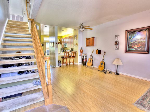 ***AMAZING Hampton Village Townhome! Travertine tile entry. Real Bamboo wood floors in living room. Beautiful FAUX Granite Counters with breakfast bar and Custom Stained cabinets in kitchen. Remodeled baths with Travertine shower and dual sinks in master and single vanity for secondary bedroom. This is a true townhome with nobody above or below! Sizeable secluded patio with room to BBQ and entertain. Upstairs laundry. Also includes a detached 1-Car Garage. The association offers Amazing pool and spa. **STANDARD SALE** NO MELLO-ROOS!
