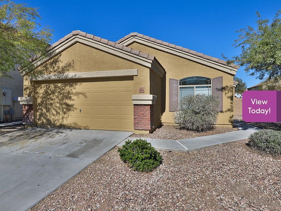 Do not miss this 4 bedroom/ 2 bathroom home with two car garage in a great neighborhood in Buckeye. Enter and find clean rooms with vaulted ceilings, fresh neutral paint, and a comfortable split floor plan. The kitchen comes complete with appliances including refrigerator, breakfast bar, and pantry. The master bedroom features an attached bathroom with double sinks plus walk in closet. Step outside to a covered patio and enjoy a large backyard, low maintenance landscaping, and block wall for added privacy.Contact us to see this home today!