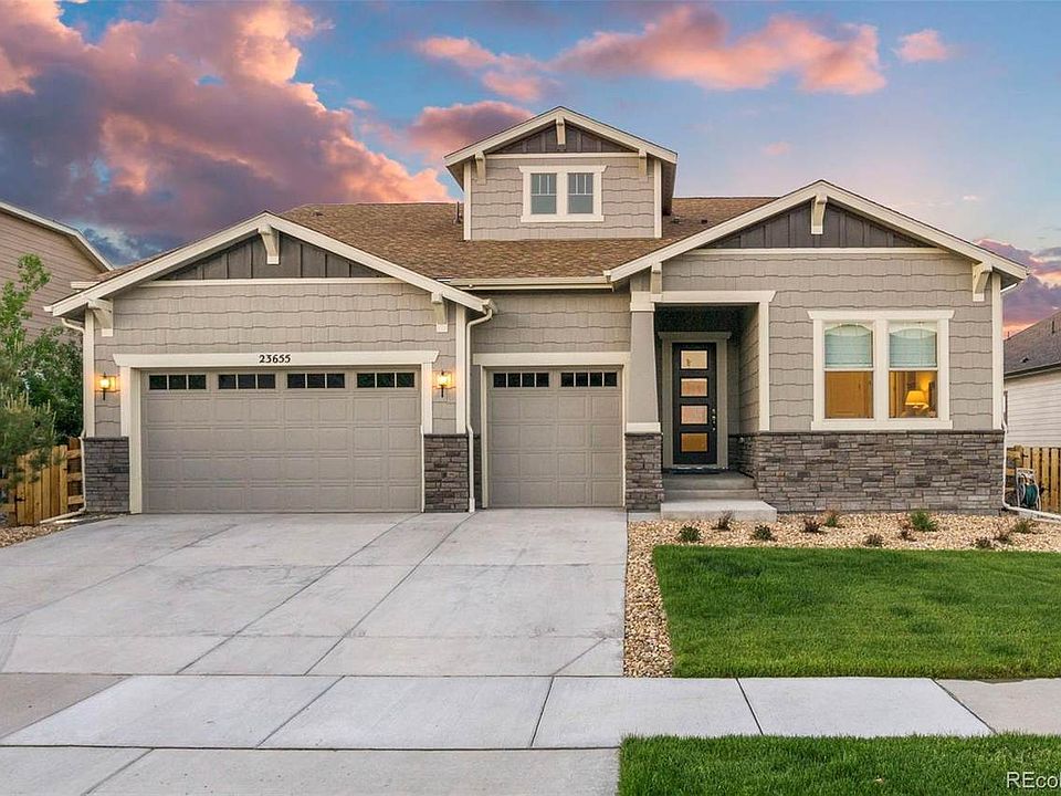 Immaculately maintained home in Inspiration available! This gorgeous ranch by CalAtlantic Homes lives like new and features a full walkout basement, 3 car garage and quiet cul-de-sac location. Extensive builder and personal upgrades throughout; covered patio with outdoor fireplace and moving glass door system, surround sound, window coverings, rain shower, quartz countertops, and modern tile. The main level features an open floor plan with an expansive kitchen island, spacious dining room, sunny great room, glorious master suite, two guest suites, and large office. The functional kitchen also includes 42" cabinets, Blanco sink, gas range, double open, and custom pendant lights. Finish the walkout basement for additional equity! Premier location with gorgeous views and great curb appeal. Enjoy the fully landscaped yard and peaceful deck -essential to the indoor/outdoor Colorado lifestyle. The deck is also plumbed with a gas line for the ease of connecting a grill. Inspiration's pool, tennis courts, and sport courts are minutes awaywhile trail systems, parks and open space are right out your front door! *Easy access to 470*Conveniently located between Southlands Shopping Center & Parker*