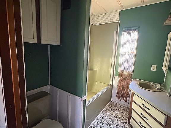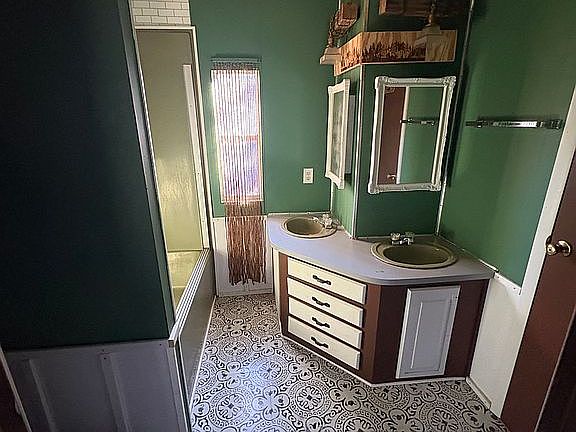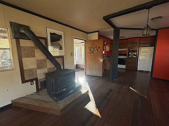 2 bedroom mobile home. Property is fenced in. Large trees, multiple sheds and work area behind the house. Extra large front door with a wheel chair ramp going up to front porch. Back porch leading out to fire pit and side yard.