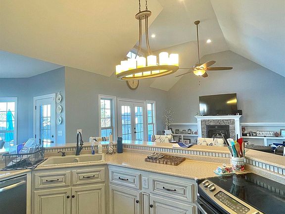 - Features: 10’ + Ceiling, Ceiling Fan(s), Fireplace, Recessed Lighting, Smooth Ceiling, Vaulted Ceiling(s), Wood Floor, Built-in Features