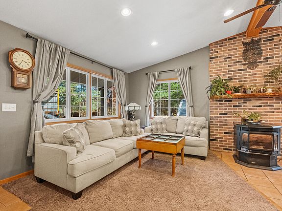 Discover peaceful living in this ranch nestled on 1.6 acres of serene countryside. With custom wood cabinets and a pellet stove, this home is designed for comfort and cost-efficiency, especially during those cold winters. The spacious master bedroom features a large bathroom and walk-in closet. A dedicated laundry room adds convenience, while the detached 2-stall garage and large shed (currently outfitted as a workspace) provide ample room for hobbies, projects, or storage. A must-mention is also the new roof in 2021! Wander the trails through the woods and enjoy the beauty of nature right at your doorstep. Located on a quiet road, this property is a perfect blend of tranquility and practicality—ideal for those seeking a cozy home with room to explore.