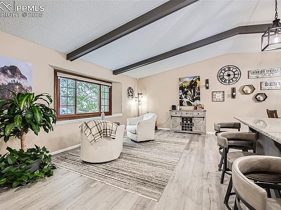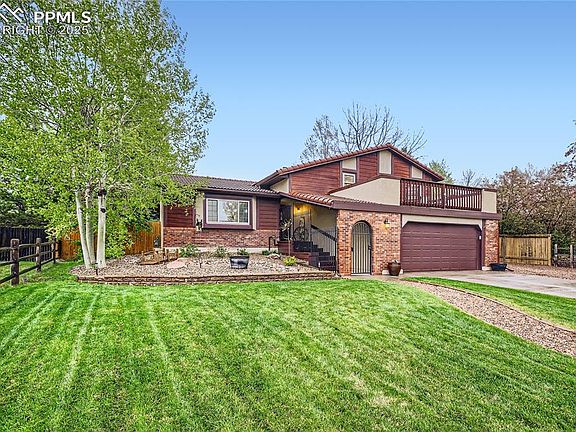 Welcome to this beautifully maintained, move-in ready home nestled in the heart of the highly sought-after Briargate neighborhood! This 4-bedroom, 3-bathroom home with an additional office space offers a perfect blend of modern updates, stunning views, and a prime location within the award-winning District 20 school system—just a short walk to the elementary, middle, and high school, home to an acclaimed IB program. Step inside to a newly remodeled open-concept main level that features vaulted ceilings with accent beams, and a cozy sitting area where you can soak in breathtaking views of Pikes Peak. The spacious kitchen features a large island, stylish two-tone soft-close cabinetry, beautiful granite countertops, and high-end stainless steel appliances—including a new LG fridge (with a craft ice maker), dishwasher, and microwave (all less than two years old)—make cooking a delight. Relax in the spacious master bedroom, complete with an opening to a large private deck overlooking Pikes Peak—an ideal spot for morning coffee or evening sunsets. The luxurious, newly remodeled master bathroom boasts a spa-like rain head shower for your ultimate comfort. The exterior is equally impressive with cement tile roofing, a durable stucco finish, and newly refreshed landscaping. The fenced-in backyard is a true retreat, featuring a two-tier landscaped design with mature trees for privacy, an automatic water-conserving sprinkler system, a paved patio, and a small doggie door for your furry friends. Enjoy the warmth of a wood-burning fireplace in the multi-level interior layout, enhanced by a second skylight in the upstairs bathroom. The home also includes a Ring alarm system, central A/C, a newly replaced garage door with app-based remote operation, and a smart front door lock system for added security and convenience. Don’t miss the opportunity to own this stunning home that truly has it all—comfort, convenience, and incredible views. Schedule your showing today!