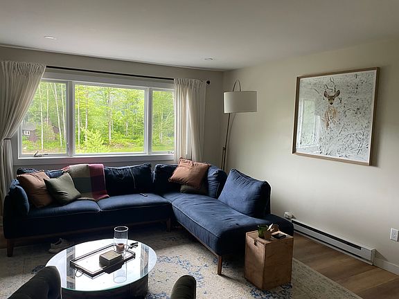 Newly constructed condo building 1000sq ft 2 story unit. Hardwood floors throughout the unit and beautifully tiles shower. All new stainless steal appliances, new washer and dryer in unit laundry. Mini split energy star rated heat pump/ac units. Located 5 miles from Stowe Mountain Resort and 2 miles from down town Stowe. Plenty of restaurants and shopping near by. Set off the road for a tranquil mountain setting. Seasonal pool included. Looking for 12 month lease would consider 6. Electric and Internet cost not included in rent.