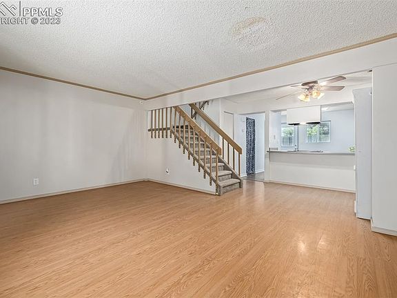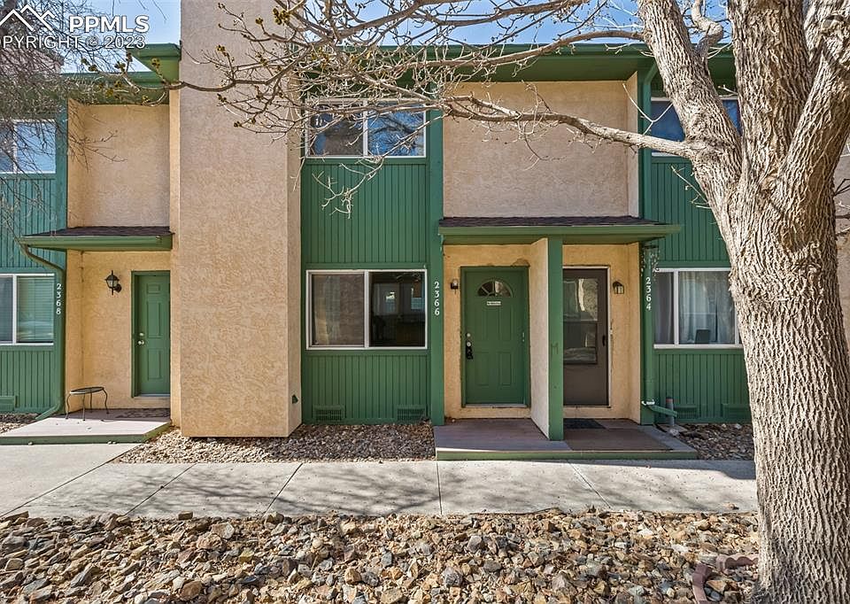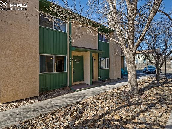 You don't have to rob the bank to own your own home. Great two bedroom, two bath townhome with quick close available. Lots of Natural light makes this townhome light and bright! Close to restaurants, movie complex, air force base, and easy commute being so close to the Powers corridor. Enter into great room with laminate flooring and a wood burning fireplace to keep you warm on cold winter days! Breakfast bar and a eat in area in the partially updated kitchen with painted white cabinets, beautiful backsplash, luxury vinyl planking and walkout to your private patio. You'll find two decent sized bedrooms upstairs with large closets and a full bath. Tons of parking in the community, so you'll never have to worry if there will be a space left for you regardless of the hour you get home. Being across the street from a park and dog park make this home even more great! Curtains in living room stay. Excellent starter home or a great one to downsize too as well! Two room window air conditioners stay with the property. Updated half bath, new hot water heater, and just serviced furnace. Schedule your showing today! Lawn and building maintenance to take place later this year.