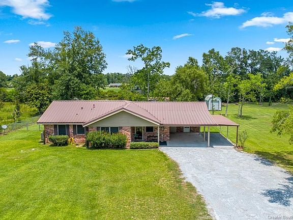 Looking for a great deal on a charming country home? Look no further! This 3 bedroom 2 bath brick home is situated on a beautiful .68/acre lot, offering plenty of outdoor space for relaxation and entertainment. The huge screened in back porch is perfect for hosting family gatherings, while the spacious interior provides ample room for comfortable living. This home has been immaculately maintained and is move in ready. Open floorplan is ideal with seamless flow between the kitchen, living room and dining areas. Spacious living room and large kitchen features custom stained cabinets, updated appliances and eat-in bar. There is a formal dining area off the kitchen and large laundry area. Master suite features 3 separate closets and a bathroom with tub/shower combo. All bedrooms are roomy with plenty of closet space. Metal roof, 2 car carport and metal storage building remains. The large backyard is chain link fenced. You will fall in love with the peaceful surroundings and picturesque views available from front and back porch areas. This is a rare opportunity to own a charming country home at an affordable price. Located in a flood zone X so no insurance is required.
