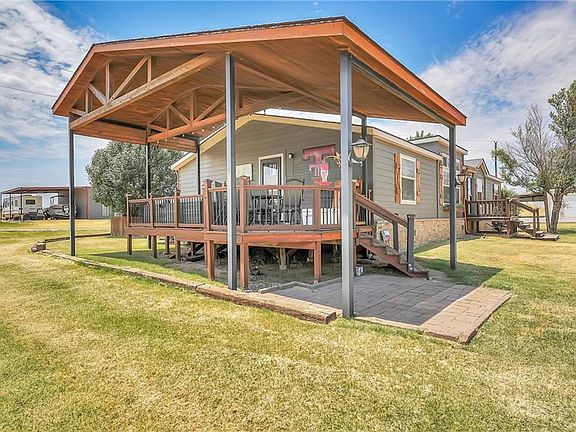Looking for a weekend get-away? Great location at Beach Haven Addition at Lake Altus/Lugert. TURN-KEY sale will convey all furnishings & décor. 3 bedrooms, 2 bathrooms & open living/kitchen/dining. Home has been updated with soft modern colors, flooring, appliances, cabinets, fixtures & canned lights. Kitchen features newer cabinets & countertops, SS appliances, and Subway tile. The large covered wood deck is a nice place to enjoy the scenery. There are several buildings for storing vehicles & toys. The 25'x50' barn is insulated & has drive-thru access. You can easily park 4 vehicles & an ATV inside. Both doors are motorized. The 17'x18' insulated outbuilding will accommodate a small vehicle. There is also a 10'x12' storage bldg. There is well on the property for watering the lawn. Septic system. Harmon Electric services the electricity & water. This is the ideal location for boating, fishing, water sports & just relaxing! Just in time for summer but a great get-away anytime of year!