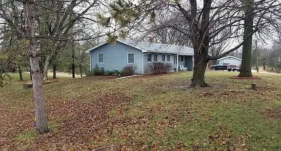 Nice ranch home, edge of town location, with walk-out basement on a double corner lot. Remodeled kitchen with oak cabinets, closet pantry, appliances include stove, refrigerator, dishwasher and microwave. Beautiful hardwood floors in living room and dining room. Remodeled full bathroom with tiled shower, jet tub, vanity and new flooring. Six panel, solid oak doors and oak trim throughout. New ceiling fans. Two, gas log fireplaces. Finished, walk-out basement has second kitchen, large 12x38 family room with surround sound speakers and utility room. 12x24 maintenance free TimberTech deck. New concrete driveway 2018. 30x21 patio. 14x22 shop with electric and refrigerator. New roof in 2015.Nicely landscaped yard on over one acre with creek view.