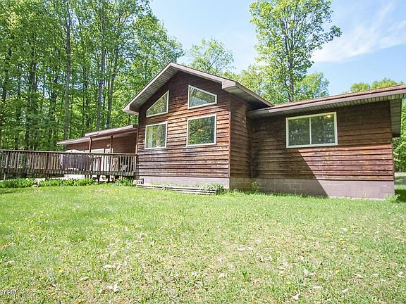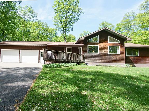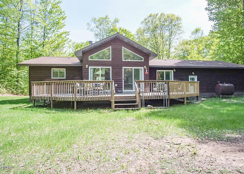 NEW price! Incredible setting and location for this custom built raised ranch home! located on a paved road just west of HWY 131, this wooded 10 acre parcel hides the home from view with a fantastic forested setting. Over 3000 square feet of living space, 3 full bathrooms and up to 5 spacious bedrooms, this home has the space for whatever you need! The ''Great Room'' features dual views of the property, vaulted ceilings, and a fireplace. A large back deck is private, and leads to the game trail..excellent hunting here! A spacious two car attached garage has plenty of room for multiple vehicles, and the basement is loaded with storage space. The woodboiler heat is very efficient and low maintenance. For more information, give us a call, or set up a tour!