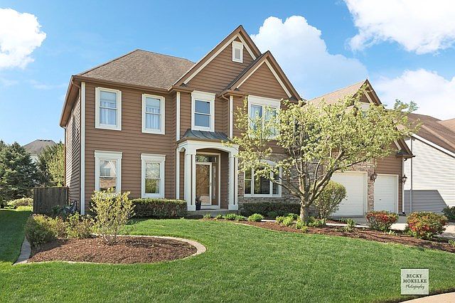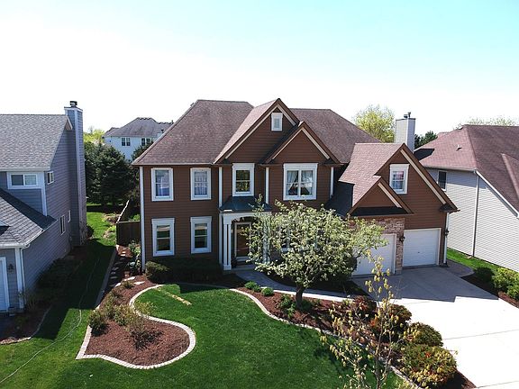 Welcome Home! You will love this floor plan with soaring ceilings & abundant windows that let the sunlight stream in. The gourmet kitchen is large & features granite counters, double oven range, stainless steel appliances, center island & walk in closet pantry & butlers pantry. Kitchen & family room flow into one another for the perfect entertaining layout. Family room has 2 story windows & a floor to ceiling stone fireplace. Home features formal living & dining rooms as well as a main floor office with adjacent 3rd full bath. Upstairs you will find 4 large bedrooms plus a loft & full hall bath. Master suite with walk-in closet & full luxury bath. Full finished basement is a dream! Featuring theatre room, recreational family room, exercise room/5th bedroom, 4th full bath & work room. Great fenced backyard for your outdoor enjoyment, with screened deck, paver patio & walkway. Just minutes to I-88 & Metra Train Station. Walk to park with ponds & walking paths. 1yr HMS Home Warranty