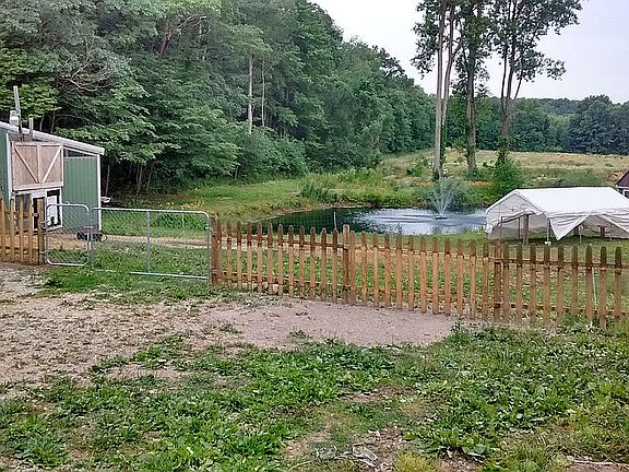 Gambrel style home sitting on almost 14 acres with a 48 X 50 pole barn, 24X12 cabin by the pond, a year round flowing stream, and plenty of room to raise a family.