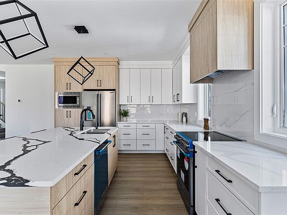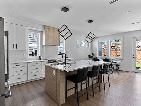 This newly constructed 4-bedroom, 3-bathroom home built by Cameroon Developments is equipped for all of your needs. The main floor has an open-concept kitchen, dining and living area that is filled with tons of natural light leading out to a covered patio and fenced yard. The gourmet kitchen has S/S appliances, spacious kitchen island, quartz countertops and integrated floor and cabinetry lighting that elevate the space. The living room has an electric cozy fireplace with an adjacent dining area surrounded by windows, as well as a powder bathroom and bedroom or office area just off of the entry. The primary suite offers a spacious walk-in closet, covered patio as well as a spa like ensuite bathroom with a double vanity sink, soaker tub and standalone shower. The upper floor has a separate laundry room with sink, built-ins and storage. Additionally, the home offers a separated 1-bedroom suite with access from the side of garage.