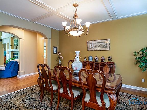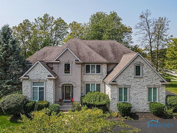 Two-story open foyer. Great room with hardwood floors and lots of natural sunlight through the windows in the two-story room. Large spacious eat-in kitchen with granite countertops and a large pantry. Beautiful first floor master with nice walk-in closet and built-ins. Four spacious bedrooms with three full baths upstairs. Unbelievable finished rec room with full bath, bedroom, and exercise room. Circular driveway. Fantastic Sylvania Township home with water views