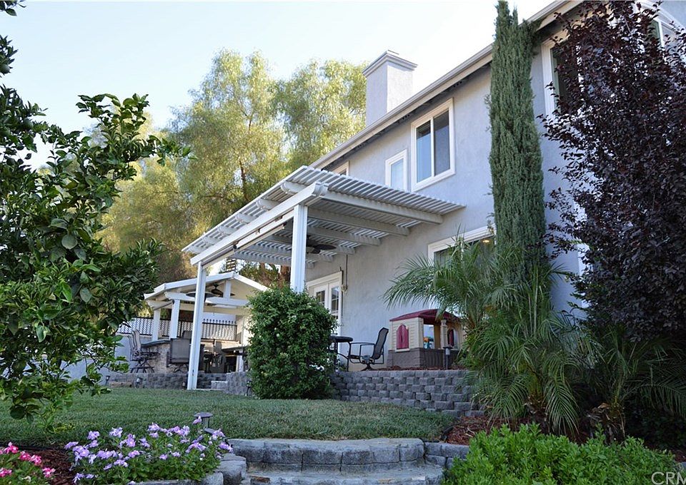 THIS HOME IS BREATHTAKING, YOUR CLIENTS WILL BE VERY IMPRESSED, IT WILL NOT LAST.......The home offers panoramic mountain and city light views. Two-story house with 3 large bedrooms, multi level utility shed, currently used as a gym (upstairs) and workshop (downstairs). Master bedroom leads to a private patio area. The home has hardwood, stone and carpet throughout. The kitchen has custom cabinets, granite counters and a beautiful back splash. It has a 6 burner stove with a Viking stainless steel hood vent. Dining room area next to living room and open to kitchen. Living room has a wood burning fire place to enjoy, with built in surround sound, ceiling fans and french doors that lead to the backyard. The backyard is an entertainers delight which has a built in BBQ with an outdoor kitchen, Vinyl patio cover with lighted ceiling fan and a tranquil waterfall with a Koi pond with fish. Newer dual pane Windows!The house is energy efficient and has solar panels. RV parking with hook ups. Rural living but close to all the best amenities. Large backyard just waiting for your green thumb. Mature fruit trees are already in bloom.This is a MUST SEE and has too many upgrades to mention.