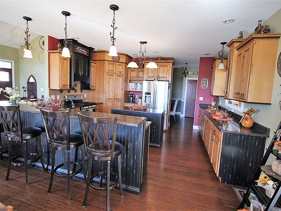 New Price! Spacious and extremely elegant 3 bedroom, 3 bath home located on 1.76 acres within Delmar, IA. You will appreciate space in this kitchen with a walk in pantry, ample cupboards, beautiful granite counter tops, a one of the unique features is the pot filler at the stove. The double sided gas fireplace is located in the dining and living room. The open concept of the main floor hosts plenty of natural light., Bamboo floors through out on the main level of this home. The master bedroom is large and has a walk through master bathroom to an oversized walk in closet. Laundry is on main level of this home. Entertain easily in the lower level in rec room/bar space as well as the designated family room. Large storage with access to the garage. Home has Geo Thermal heating and cooling. There is a 58x88 shop with its own entertainment space as well as work area. This home is one of a kind and the owners have put the time and thought into each area of this property. Call today for your showing.