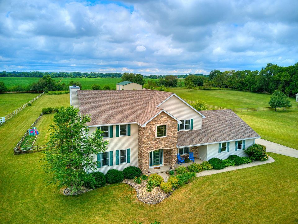 Fantastic acreage that provides the best of both worlds - a beautiful, spacious property in a friendly neighborhood within minutes from Ames and ISU on hard-surface roads. The property has a glorious two-level deck with views of fields and horse pastures. The established landscaping features hibiscuses, roses, and lavender, plus fruit trees and raspberry bushes. The large 2-story house is open and airy with an expansive entryway, a bright, cozy four-season sunroom, large windows in almost every room, and a large kitchen with a center island and granite counter tops. The elegant master suite has a beam and floors made of wood reclaimed from a barn in Winterset. The 42 x 60' metal building has potential to be converted to a horse barn, can be used as a machine shop or storage shed, and makes a great place to host an outdoor movie night. There is a 3-stall garage and huge finished basement that offers a large bonus room and tons of added storage. This house has been loved and well-maintained by current owners. It is a wonderful place to raise a family.