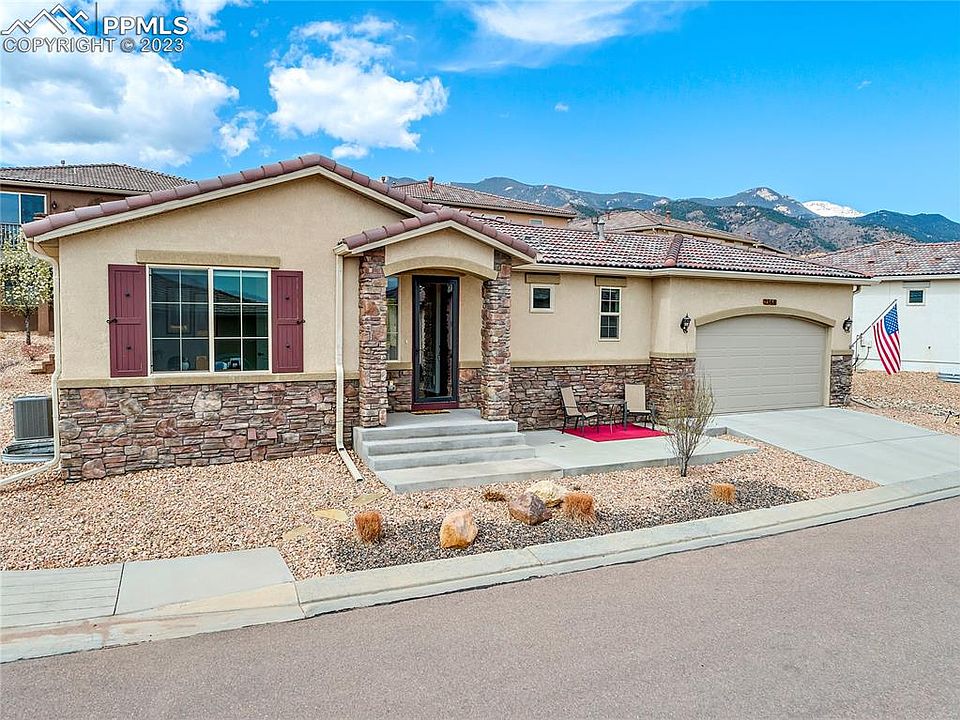 Dreaming of main-level living and mountain views? Experience convenience and luxury in this 4-bed, 4-bath, 2,768 sq ft ranch-style home in the exclusive gated community of Broadview Terraces. Built in 2016, this home offers the perfect balance of activity in West Colorado Springs and tranquility in this boutique community. Designed for low-maintenance living, the home features a large kitchen with instant hot water, an open-concept great room, and a main-level primary bedroom, laundry, and mudroom. Upgraded finishes include granite countertops, engineered wood floors, maple cabinets, and a built-in mudroom bench. Stay cool during summer with A/C, UV film on main-level windows, and fully electric solar shades and privacy blinds. The UV film provides privacy from the neighbors too - you can see out but they can't see in! Relax in the fully finished basement with 9-foot ceilings, or take in breathtaking mountain views from the front patio or pergola-covered backyard patio. The home also features an oversized garage with a full-length driveway and xeriscaped yard. Enjoy the ease of living in this stunning community.