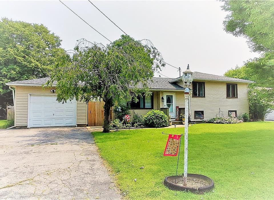 Spacious 3bedroom, 1.5bath Split-level home. Updated large eat-in kitchen. hardwood floors. updated main bath. Newer main roof - approximately 2010 and upper roof (2017) New Vinyl Siding (2017). Fully stockade fenced-in private yard with above ground pool, shed, large patio. Great for entertaining and large 1.5bath detached garage with bar.