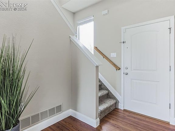 This wonderful 3 bedroom, 2.5 bath home, located within minutes of Fort Carson and all other bases, is a dream home. No need for you to have to update any part of the home. It has been done for you! This includes all new fixtures, lighting, faucets, timed lighting, beautiful modern medicine cabinets in the bathrooms, full size mirrors in the walk-in closets. Brand New luxury vinyl flooring in the kitchen and entry. Gorgeous new custom granite counters in the kitchen and bathrooms, not to mention all new 4 inch floor trim throughout the home. Upstairs you will find the large master bedroom and attached full bath with double vanity and a walk-in closet are finished with modern touches. The additional 2 bedrooms upstairs are sure to please with a full bath to share. You will not need to haul laundry down stairs, all your clothes will be clean coming out of the brand new washer and dryer. On the main level you will find a grand entry and half bath, along with 2 large storage closets. The beautiful living room that looks out to Pikes Peak also has a gas fireplace and dine-in kitchen with plenty of room for even your large china hutch. Stainless steel appliances adorn this well planned kitchen with a new double sink, dishwasher, and a large pantry. Do not miss your opportunity to move into this amazingly maintained home. Oh, and yes it has A/C for these hot summer days!