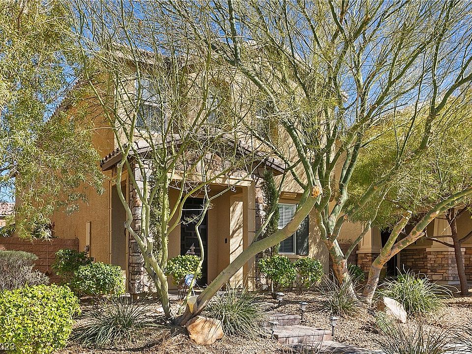 NEW PRICE ON AN Exceptional 2 Story, 4 BR w/huge loft & 2 car back entry garage, situated on a tree-lined street in the coveted Inspirada community! This established,award-winning masterplan community of Inspirada is an escape from the ordinary.This home boasts beautiful curb appeal w/ well-maintained desert landscape & paved stone walkways. Enjoy a gourmet kitchen,including a new 5-burner gas range & microwave, showcasing attractive granite counters that complement the newly upgraded backsplash. The oversized, geometric granite island houses a stainless steel undermount single bowl sink. Double doors lead to an impressive primary suite with a large walk-in closet.This space is large enough for a tv/sitting area or home office. 1st floor has a Bedroom with w/double doors & 3/4 bath closeby.Freshly painted downstairs & new ceiling fans throughout. Only minutes away from Potenza Park w/basketball courts, shaded areas, skate park, community pool, & easy access to schools, shopping & more!