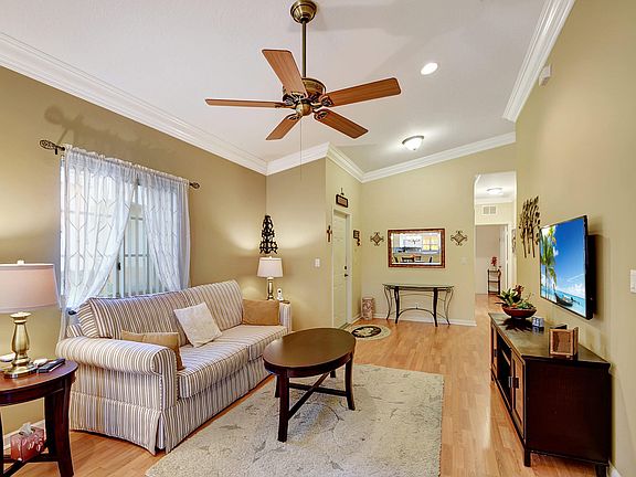 This beautiful 3 bedroom, 2 bath end unit in Baywinds offers beautiful views of the lake from your patio, walk in closets, tile on the diagonal, crown molding, newer AC & more. Enjoy this carefree lifestyle where the landscaping & exterior painting, cable, internet, home alarm & home phone are included. Spend your days at the clubhouse participating in pickleball, tennis, bocce, card games & numerous club activities. Swim in the resort style pool, lap pool or resistance pool. Work out in the fitness center & relax in the hot tub & sauna after. There are lectures, shows & big events in the ballroom, play billiards or a card game with friends or enjoy a movie in the theater. There is a library & multi-purpose/crafts room. Come join in the fun!