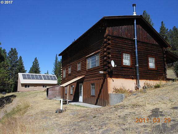 End of the road for year round or seasonal/recreational use. 3000sq ft +/-, one owner 2 story home.3bd/1ba on main floor. Master bed, bath on 2nd floor. Extra room for office/walk in closet.Full daylight b-ment.Seller will credit buyer $5,000 for new solar batteries. Smaller 21x26 log cabin near main house. Great views from this 80 +/- timbered acres with gravity flow spring w/1200 gal storage tank. LOP tags. Borders National Forest.