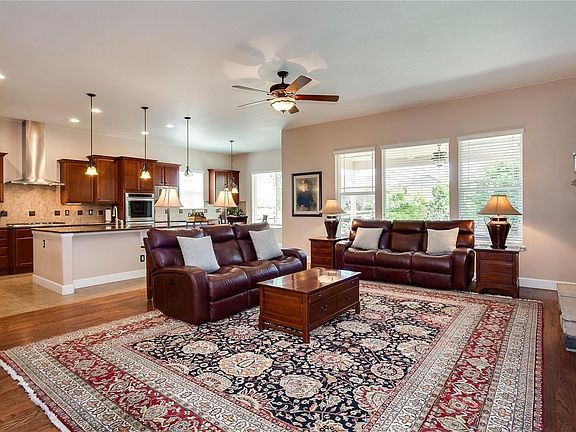 This beautiful executive home has the highest quality of finishes- open floor plan- oak flooring- granite counter tops- stainless appliances- 3 car garage- two custom outdoor living areas in front and rear of home- water feature- professionally landscaped with beautiful trees, shrubs and perennials surrounding the perimeter of the property- a very special home!