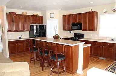 You will love the beautiful covered front porch that welcomes you and your guests in to this spacious home. Kick your shoes off and relax in the open living room or invite your friends over for dinner in the gorgeous formal dining room. Cook delicious meals for your family in the stunning kitchen with Cherry cabinets, hardwood floors, tile backsplash and a center island with a double stainless steel sink. Work from home in the main floor office or rest for the night in the lovely master bedroom with coved ceilings, custom paint and a 5-piece master bath. Invite your friends over for a game night in the family room in the basement or have your out-of-town guests stay for the night in the large basement bedroom with a walk-in closet. Spend your summer evenings on the back patio overlooking the greenbelt and enjoy the peace and quiet of this wonderful home.