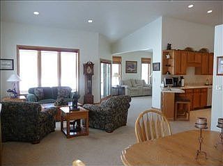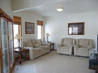 This is a great one level home that is located on the 11th fairway of the Hart Ranch Golf Course. The views from this home are incredible all around. When you walk into this home, you are greeted by a great floor plan. There are many things in this home that make it neat and unique. There are vaulted ceilings throughout the entire house with lots of plant shelves. The spacious kitchen is open to the living room, dining room, and family room. The kitchen also has tile flooring, under cabinet lighting, pull out shelves, an eat-in breakfast bar, and beautiful oak cabinets. The great room has a nice fireplace as a focal point. The family room is connected to the living room, which makes it easy to make one large room, or two separate spaces. There is a large deck right off of the family room with awesome views of the golf course and the canyon. The master bedroom is large and has a deluxe master bathroom with a jetted tub, walk-in closet, and a double vanity. Just off of the entryway is a large office space (17x13) that could also be a 3rd bedroom. There is an oversized main floor laundry off of the garage, and a nice 2nd bedroom and bathroom. The 2nd bathroom has a skylight and tile floors. All this is on one level living! Check this wonderful house out and live on the Hart Ranch Golf Course!