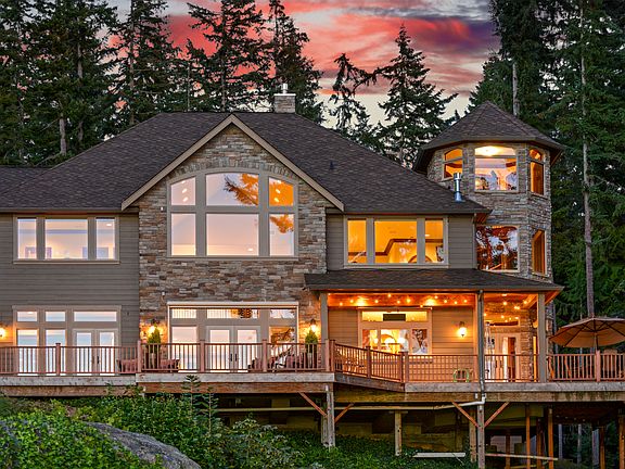 Western Exposure Hood Canal Waterfront on 3.67 acres, 232+ft of gravel & sand beach & tidelands, chefs kitchen, custom den/Ofc & home theater on main floor, computer/tech rm, wine cellar, indoor gym,mstr w/ensuite bath & spiral staircase @ lookout tower, bdrms are huge, Jack & Jill bth, Mother in Law apartment w/separate entry, 5 car gar, utility building, 160 degree views of Hood Canal & Olympic Mtn Range! Walking path to beach.See Matterport Video/virtual tour attached. One of a kind!Call NOW!