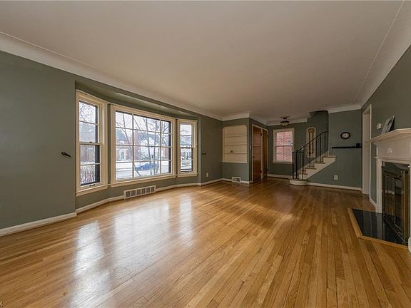 University Heights brick charmer in a desirable location - hardwood floors are a big plus. Eat-in Kitchen with marble tile counters, ceramic mosaic tile back splash, wood cabinets & pantry. Formal Living Room with Bay window, granite surround fireplace & Formal Dining Room with cove ceiling & chair rail. Sun Room off Dining Room with 3 walls of windows. Second floor has three bedrooms and a main full bathroom. Partially finished lower level Rec Room. Central AC, two car detached garage & concrete driveway. Close to everything - shopping, parks, minutes from University Circle, minutes from downtown. Will transfer City of University Hts POS compliant.