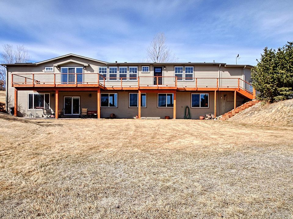 Gorgeous, updated, ranch style-open floor plan w/4 bedrms, plus study, 3 baths, a fin walk-out basement, and a huge oversized, heated 3-car garage & workshop area, on 9.8 acres! Watch stunning sunrises through wall of windows in the great rm & dining rm. Enjoy the kitchen with granite tops, s s appliances & skylights. The main floor includes distressed, hickory engineered hardwood floors, a main flr study w/ glass panel barn doors, a Master bedrm w/ a 5 piece bath & large walk-in closet, and a roomy main floor laundry rm w/utility sink & lots of cabinets. The walk-out basement offers a gas fireplace, a home theater system including screen, projector & entertainment center, future wet-bar ready w/plumbing already installed, cove ceilings, a full bathrm, 2 large bedrms, a craft rm, a storage area w/workshop space & second laundry area. Ideal for autos: insulated & wired with 110 &220 3-car garage w/5 parking spaces/huge workshop area, built-in cabs, tool boards & storage! No covenants!