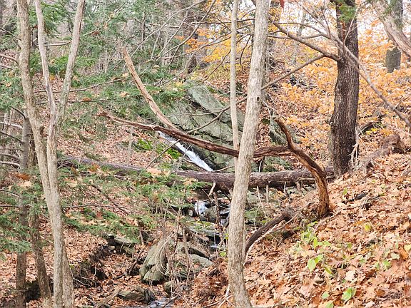Nice view of round pond. Home will need power. As it was off ground no current panels in place. Bring your plans to finish this one off. Has a wonderful stream abutting the property as well. Home being sold as.is condition.
