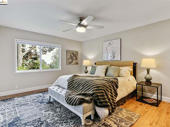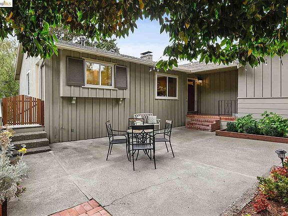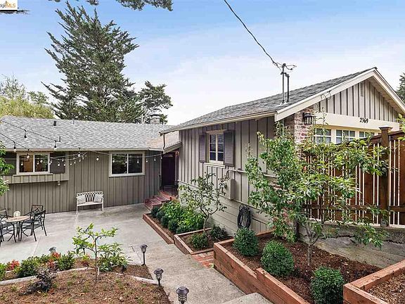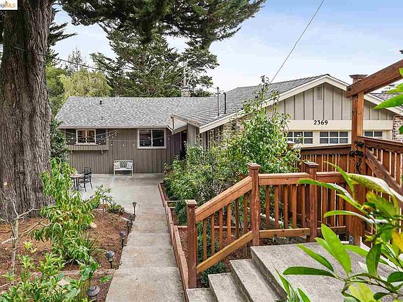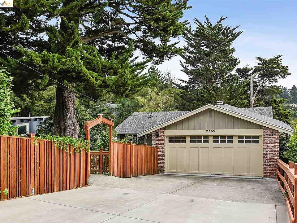 2369 Thackeray is a poem of a house! This beautiful Piedmont Pines home has a fully fenced front yard that encloses a terrific landscaped yard and has a very useable front patio just made for relaxing on balmy starry nights. The inside of the home has a large living room with verdant views, and an open dining room off a newly refurbished kitchen with gorgeous new counters and backsplash. There are two large bedrooms on this level one of them the master with its own bath en suite. There is a renovated full bath on this upper level. There is an entrance to the two car garage with storage from the breezeway to the front door. The home features tons of storage- Downstairs you find a large open family room, utility room, two lovely bedrooms with gorgeous full bathroom, a great bar and sink area, and so much more. The lot extends to the street below and all of it is lovely, light, bright and airy with beautiful mature trees.