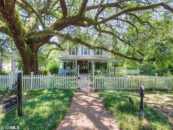Welcome to "Sibley Place". A beautiful historic southern plantation/farm home built in 1850 and listed on the National Register of Historic Places. The home has been lovingly and carefully restored, fully updated and modernized. Southern Architecture with wrap around porch and center hall provide features of long ago. Sibley Place located in the family-friendly neighborhood of Montrose, Alabama adjacent to Fairhope. Zoned for award-winning Fairhope School District. Public beach access to Mobile Bay only two blocks away at Old Steadman’s Landing. Six bedrooms and 4.5 bathrooms, Living room, parlor and formal dining have stories to share from the warmth of the fire place, wood paneled walls and original hard wood floors. Main floor Master Suite with his and her walk-in cedar lined closets, fireplace and spa like bath, private access to grounds and pool. Some features of "Sibley Place" include: in-ground pool with diving board, oversized wrap around porch with 5 ceiling fans, separate dining room with built in storage bench seating, side by side full-size refrigerator and freezer, separate icemaker, chef's kitchen with eat-in dining area for 8, dual fuel stove (gas top with electric oven), laundry room with utility sink, wet bar in office, fireplaces, antique paneling in office and dining room, ceiling fans throughout, master bedroom with en-suite bathroom two walk-in closets and personal wood burning fireplace, three-zoned HVAC, gas and electric power, two gas water heaters, double pane windows, antique claw foot tub, antique powder room sink, scuppernong vine covered dining arbor with stone/brick patio and fountain, fully fenced yard, two car carriage house with shop space, live oak trees, blueberry bushes and large variety of old world Camellias. Owner’s retired, downsizing, staying in area of this tree lined walking, biking and golf cart Mobile Bay hill top neighborhood. Buyers agency welcome.