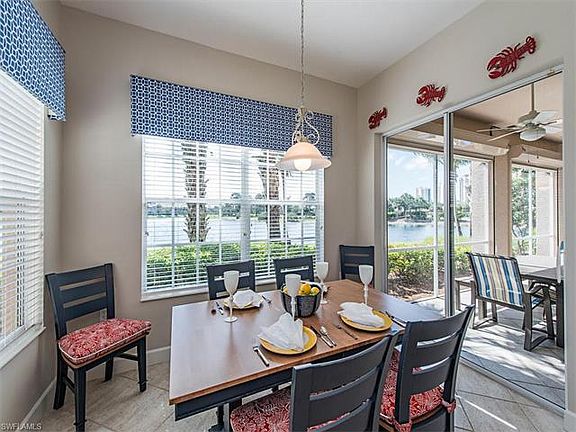 This lovely condo suffered no damage as a result of Hurricane Ian and is move-in ready! Stunning 1st-floor condo in Merano at The Colony, one of the most prestigious communities in Southwest Florida. This home has a spectacular water view to enjoy wildlife & beautiful sunsets. It features 3 tastefully furnished bedrooms- king bed in primary bedroom, queen bed in one guest bedroom, and twin\full bunk (convertible to single beds) in the 3rd bedroom, as well as 3 full baths, (half-bath upgraded to full bath!) The wet bar upgrade & spacious great room/dining will accommodate a large gathering. The lovely screened lanai includes electric hurricane shutters. Brand new stainless steel frig, range, and dishwasher in 2022, A/C 2021, and HWH 2020. Residents have access to Merano's community pool & exercise room, as well as all Pelican Landing amenities: private beach, canoe/kayak park, sailing center, community, and fitness center, tennis, pickleball, and bocce. The Colony offers a world-class championship golf course that’s optional to join. There’s also waterfront fine & casual dining at the Bay Club. This is your perfect SWFL home!
