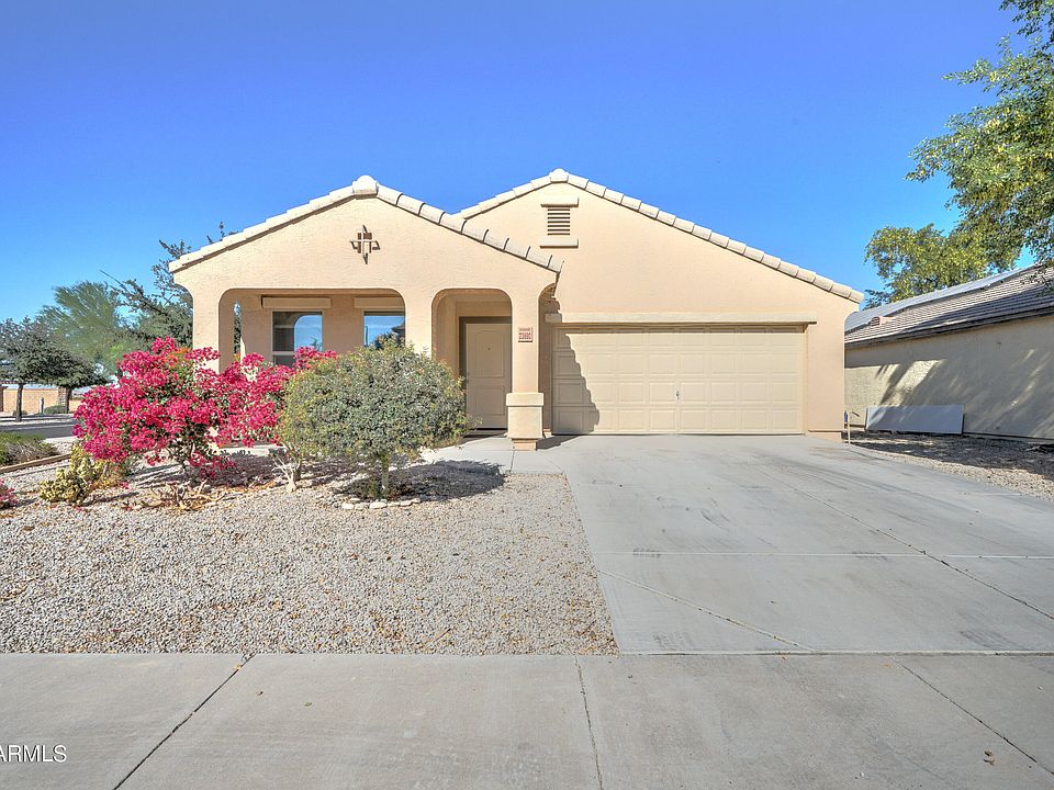 Looking for a new place to call home? This charming 3 bed, 2 bath single-level home in Sonoran Vista is the one! Nestled on a corner lot, it displays an easy-care landscape, a 2-car garage, and a cozy front porch to enjoy morning coffee. Discover a versatile den just off the front entry! Continue onto the semi-open layout paired with neutral paint, vaulted ceilings, abundant natural light, and tile & wood-look flooring in all the right places. The kitchen boasts built-in appliances, ample wood cabinetry, track lighting, & a breakfast bar. Primary bedroom has a private bathroom for added comfort. Check out the large backyard, where a covered patio awaits! It also gives you the potential to create a perfect outdoor living space. NO neighbors behind as well for maximum privacy! Welcome home!