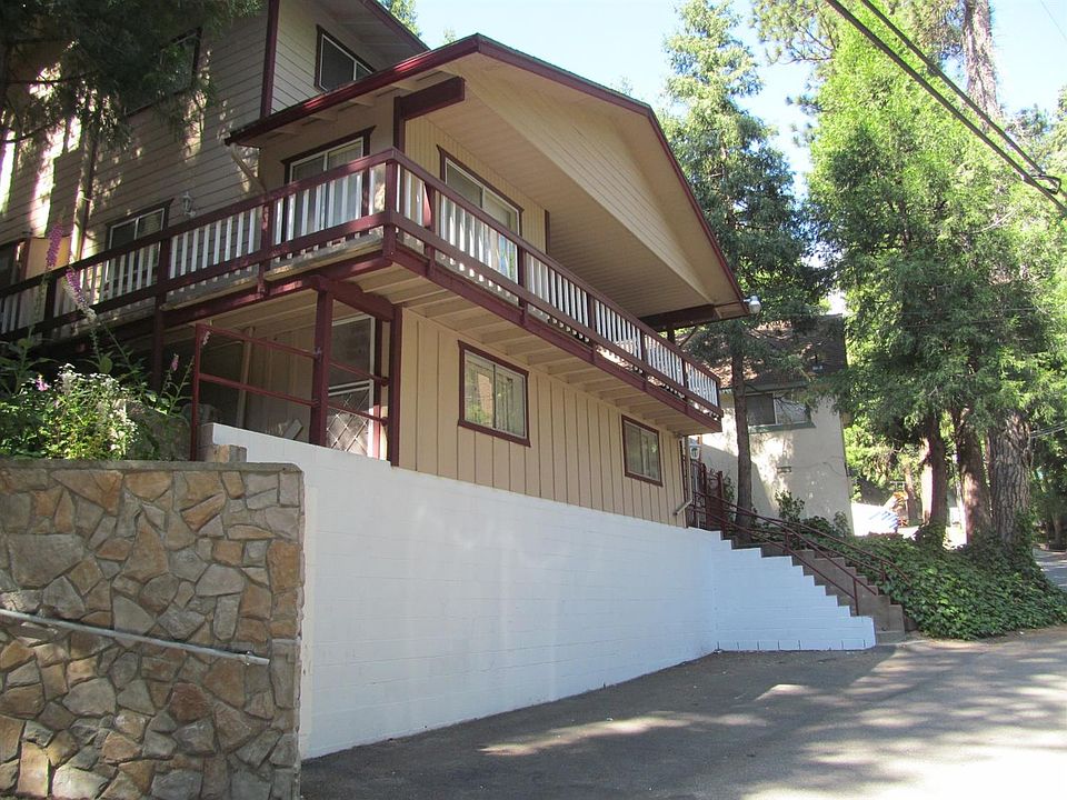 Nicely updated 3 bedroom and 2 baths with large kitchen and dining area. Ceiling fans in every room. Living Room fireplace. Laminate flooring throughout. Window blinds included. Large work shop under front deck. Level parking for 3 or more cars. Front and rear decks and usable back yard with storage shed.