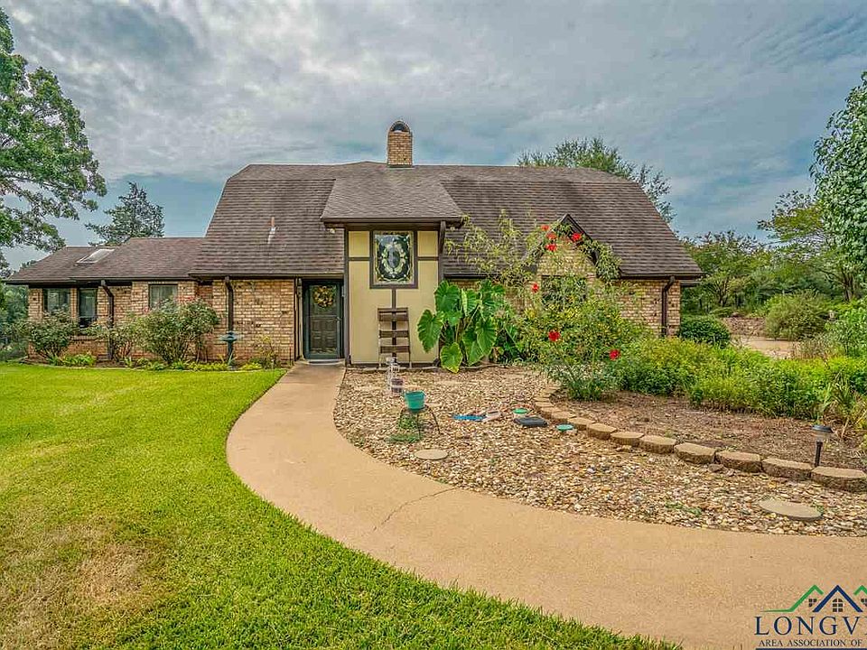 Custom-built 4/2.1 home, centrally located to I-20, Longview, Tyler, and minutes from UT Health North Tyler. Open living area is great for gatherings. Comfy fireplace in the downstairs master suite. Upstairs landing has bookshelves and is a perfect casual reading area. Upstairs Jack-n-Jill bathroom connects 2 upstairs bedrooms. Fourth upstairs bedroom, accessed through "hidden" panel door, has huge closets and storage space. Beautifully landscaped, with master-gardener touches. Shop and greenhouse included.