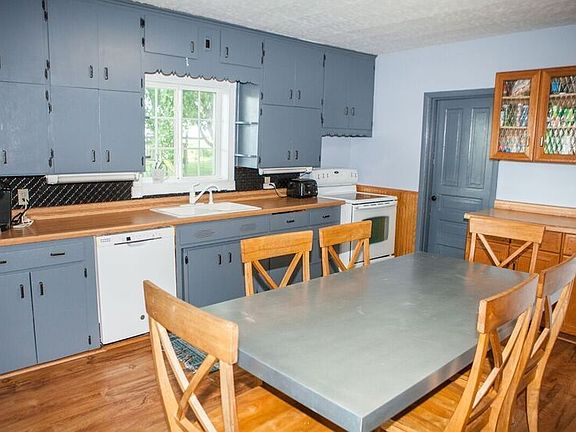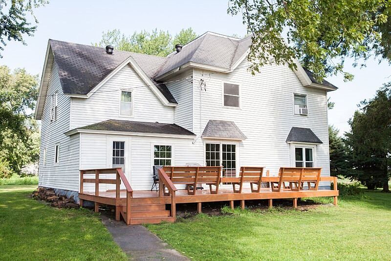 4-5 Bedroom, 1 3/4 bathroom acreage with 2.73 acres of ground. On the main level you will find a spacious kitchen, main floor laundry, large dining room, big main floor bathroom and large living room with wood burning fireplace. Upstairs features 4-5 nice sized bedrooms or one could be used as an office area. Outside is a barn, 2 stall garage and machine shed. Relax out on the spacious deck and enjoy the country life!! Grain bin not included.