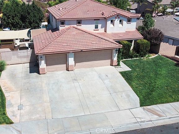 Wonderful TURNKEY Pool and RV Parking Home home in the Amazing Neighborhood of Canyon Heights in the City of Menifee. Beautiful home with 4 Full Bedrooms and a bonus room that can easily be converted into a full 5th bedroom, currently used as an office located on the main level, 3 Full Bathrooms, 2,795 Sq Ft on a 10,454 Sq Ft Lot which is a quarter acre in a tract lot that is not seen often. Backyard does not only have a pool but is also fully mature landscaping with lush and green vegetation and shade trees galore. Everything all on automatic watering systems plus above ground vegetable boxes fully irrigated and full privacy with no rear neighbor. Extra concrete added for additional side parking for Multiples vehicles included RVs, Trailers, Toys. Interior of home find wood floors throughout main level with updated paint throughout entire home. Family Room with Fireplace connected to Kitchen and dining area. In Kitchen you will find white tile countertops with upgraded cabinets and upgraded stainless steel appliances with a great view of backyard. On main level find an additional bonus room currently used as an office that can easily be converted into a 5th bedroom. Master bedroom located upstairs with master bathroom with double sinks, walk in shower with individual bathroom and great size walk in closet. 3 additional bedroom on 2nd level with a loft currently used for a gym. Home is wired with security cameras and lights around the entire perimeter of home. Plenty of home space for a big family and property space for entertainment and a family that has toys. Canyon Heights consists of 394 homes that is not overpopulated and well maintained. There is also an elementary school located in the neighborhood and is one of the lowest tax rate neighborhoods in Menifee. Don’t miss out on this!!!