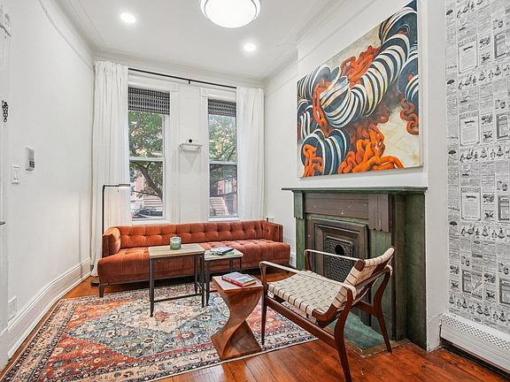 Smart, Stylish, and Effortlessly Comfortable. This charming Parlour Floor condo blends historic detail with modern upgrades. Just four easy steps from the street, it features soaring vaulted ceilings—the highest in the building—floor-to-ceiling windows, and a restored blue stone fireplace mantel. Enjoy comfort with three ceiling fans, a custom floor-to-ceiling closet, and smart home tech including: