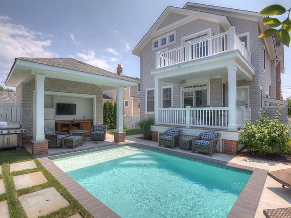 New construction Stone Harbor cottage built by Harbaugh Developers. Located in a wonderful part of town, you are walking distance to classic venues such as the Windrift and Icona Golden Inn. Less than 2 blocks to the beach and a half a block to the bay with public access for all of your water activities. This modern yet classic design boasts 5 bedrooms, 4 full baths and 2 powder rooms. Some of the features include a chef's kitchen with Viking appliances, cathedral ceilings, shiplap walls along with custom trim work, wainscoting and hardwood floors. The family room downstairs leads out to a private backyard oasis complete with a pool and cabana. Get in early to work with the builder to choose your finishes! Estimated completion late fall 2019. Photos are of similar projects.
