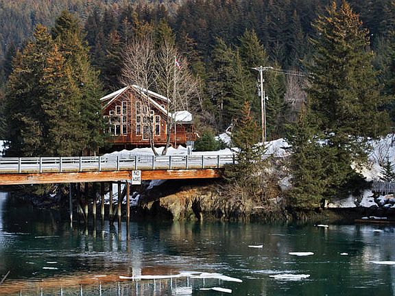 This waterfront jewel features views, open-plan living, custom wood-working, in-floor heat, and delightful nautical surprises such as an historic porthole! Unlike most other waterfront homes here, this is built on solid ground. The large lot affords plenty of room to park your boat and toys. There is a view from every room! And you can literally catch a king salmon while standing in the yard