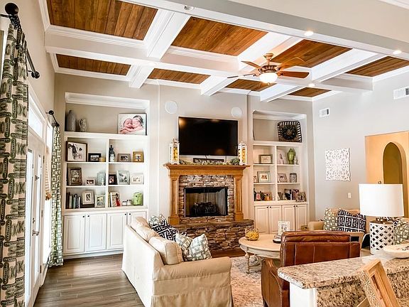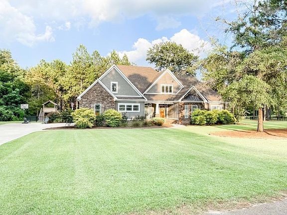 GORGEOUS CUSTOM-BUILT 4 BEDROOM/3 BATH HOME on a corner lot in the privately gated ALEXANDER FARMS. This amazing salt water pool home sits on 1.37 acres with pond views! The home includes an open concept with a split bedroom plan, coffered and trey ceilings, granite counter tops, & porcelain wood tile flooring throughout. Family room with gas stone fireplace and built-in cabinetry. The kitchen has custom cabinets, oversized island, breakfast bar, cook top, stainless steel appliances and dining area overlooking the backyard pool and pond. Additional features include a walk-in pantry, mud room with drop zone, & laundry room with utility sink. The owners suite is located on the main floor with an en-suite bath which consists of dual closets & vanities, walk-in oversized tiled shower with glass enclosure, and free-standing tub. Large upstairs bonus room can be used as another room, office, or man cave. The additional 585 sq ft of covered outdoor living area is perfect for pool parties and entertaining! The brick wood burning fireplace is great for those chilly football nights. The exterior of the home includes raised slab foundation, brick, stone, & concrete board siding, & a fenced in professionally landscaped yard with irrigation system. Call Today to see this gorgeous home! Additional photos coming soon! Agent/Seller relationship.