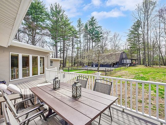 Nestled on 2+ acres, this charming home features a 2-car detached barn w/ loft & extra storage—a true BONUS! Enter inside & you'll immediately feel the warmth & ambience. Mudroom/Sunroom is sundrenched w/ electric stove & much natural light. The spacious kitchen boasts a massive island, solid surface c-tops, custom cherry cabinetry, cabinets galore, & wet bar opening to a sunlit dining area flanked by windows overlooking the beautiful yard. The great rm addition offers soaring 10ft wood ceilings, custom cabinetry (stays w/ sale), & a brkfst bar open to the kitchen. The en suite includes a main bth, cedar WIC, & spacious bdrm. Opposite wing has 2 bdrms, full bath, & cozy living rm w/ a wood-burning FP leading to a 2nd-flr office/den w/ a cozy cabin feel. The backyard is amazing—flat & perfect for entertaining, w/ a private deck ideal for outdoor dining overlooking serene woodlands. 5 mini splits throughout (2023 & 2024). Enjoy the perfect blend of charm, space, & functionality!