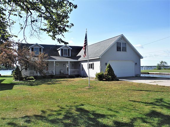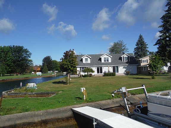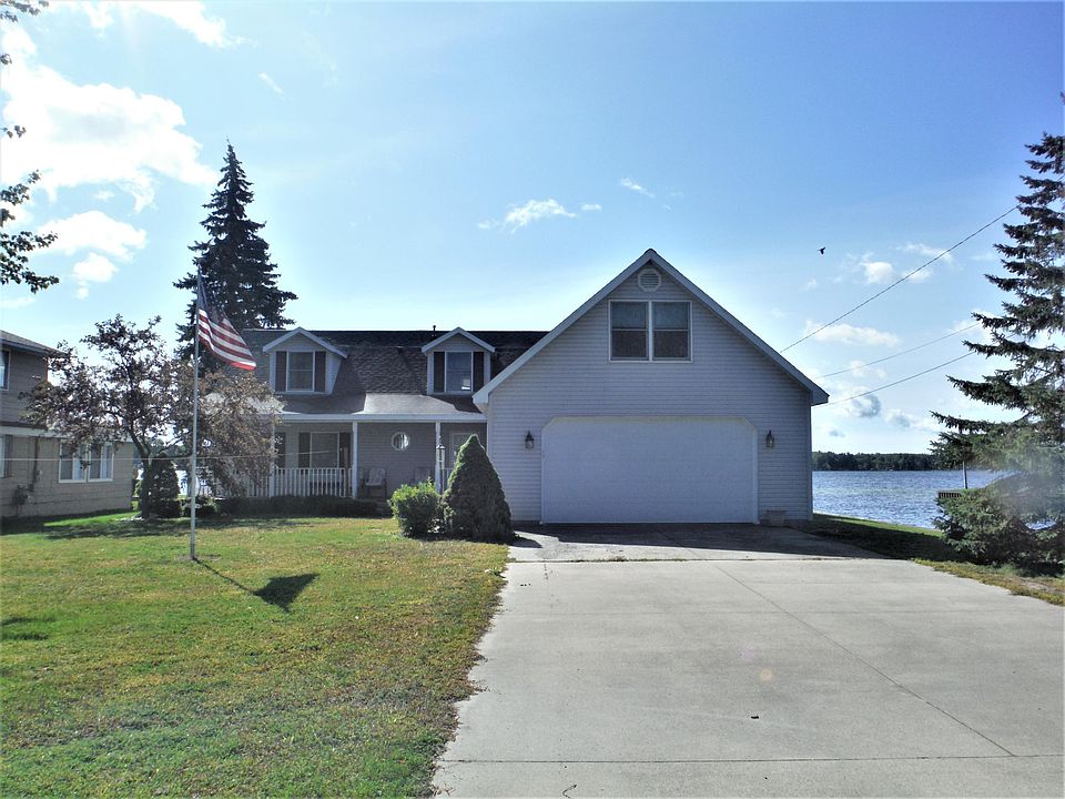 Lots of potential in the spacious 3 bed, 3 bath home with huge bonus room over the garage. Enjoy the amazing view of the water from various different rooms in the house. Kitchen, dining and living room offers panoramic views of the Southern Bay. Home needs a little TLC but is priced to sell. Enjoy 80 ft of sandy bottom lake frontage along with 200 additional ft. of canal frontage that runs along the side of the property. Main floor master suite with private bath, additional main floor bath and the remaining 2 bedrooms/1 bath on the second floor. Oversized garage offers 31.5 ft depth, ideal for storing your boat all winter. Buy it now so you can get it ready to make some lakefront family memories this summer!