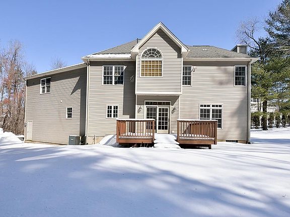 This beautiful 2,800+ sq.ft. Southern Colonial has a spacious interior with a two story foyer and vaulted tray ceilings. Located near the Bear Hole Water Shed this home boasts 10 rooms with 5 bedrooms and 3 baths. The living room has a gas fireplace and is open to the kitchen which has a dining area, cherry cabinets, granite counters and stainless steel appliances. The first floor has refinished hardwood floors, half bath with ceramic tile floors, a small office and a pantry. Plenty of room for entertaining in the dining room with hardwood floors and wainscoting. The second floor has 5 bedrooms 2 full baths and a laundry closet. The basement is finished with a pool/game room and a large theater room for movie time and relaxing. Fresh paint throughout most of the home 2nd floor has all new carpeting.. Relax on the deck located off the kitchen and watch the children playing on the playscape (included). Don't hesitate to schedule your showing today!