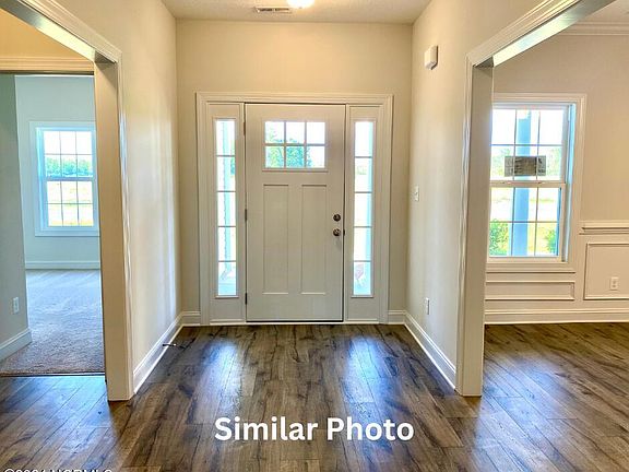 Welcome to the highly desired & popular community of Onslow Bay. Brand new construction built by Onslow County's most trusted & preferred builder, featured in Builder 100/ Top 200 Builders in the country. Onslow Bay is a hot spot, 3 miles to MCB Camp Lejeune's Piney Green gate, 14 miles to New River Air Station & minutes to area schools, shopping & dining. This beautiful neighborhood is sure to impress, complete with a clubhouse area & community pool. If curb appeal is what you're looking for, then check out the Massey with 3196 heated square feet! A lovely 4 bedroom/4-bathroom home. The front porch is charming and waiting for your hanging baskets. The exterior boasts easy to maintain siding with an accent of brick or stone, and a 2-car garage. The clean, classic landscape welcomes you home. The foyer is open to the formal dining room. The massive family room approx. 18 x 19, features a fireplace topped with a custom mantle. The family room is open to the kitchen and breakfast area. The beautiful kitchen features staggered cabinets, an island, and stainless appliances. The cozy breakfast area opens to a covered back porch with an extra patio. The spacious master suite is a true space of retreat with approx. 18 x 19 and a luxurious master bathroom. The master bath features a separate tub and shower, a double vanity topped with cultured marble and a custom mirror. Complete with a 10 x 13 walk in closet too! The second-floor bonus room is approx. 22 x 12 includes a huge walk in closet and full bathroom. This is the perfect space for a game room, in-law suite or home office. Make an appointment today to view this awesome floor plan. NOTE: Floor plan renderings are similar and solely representational. Measurements, elevations, and specs may vary in final construction. Limited selections for buyer to choose. Call L/A to verify.